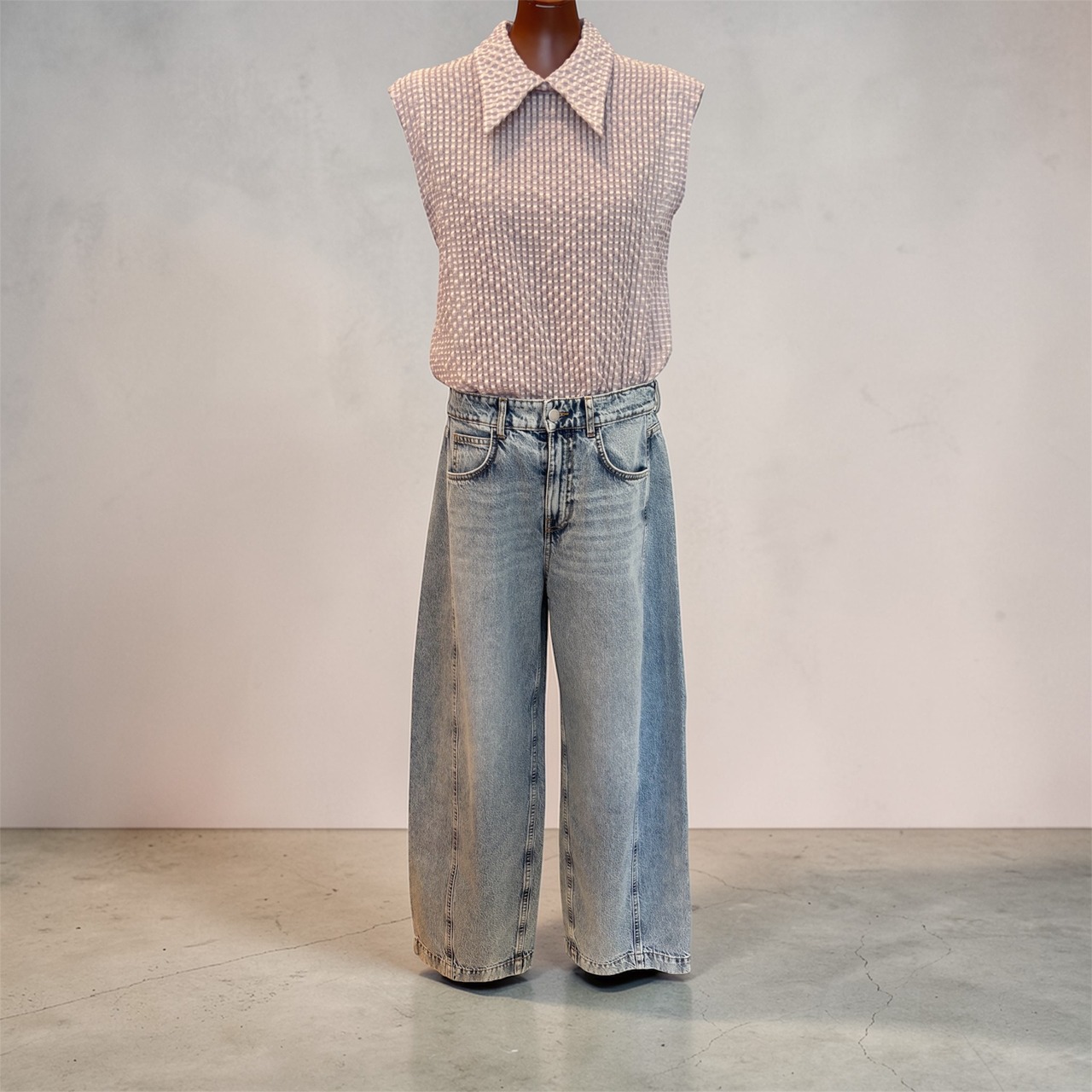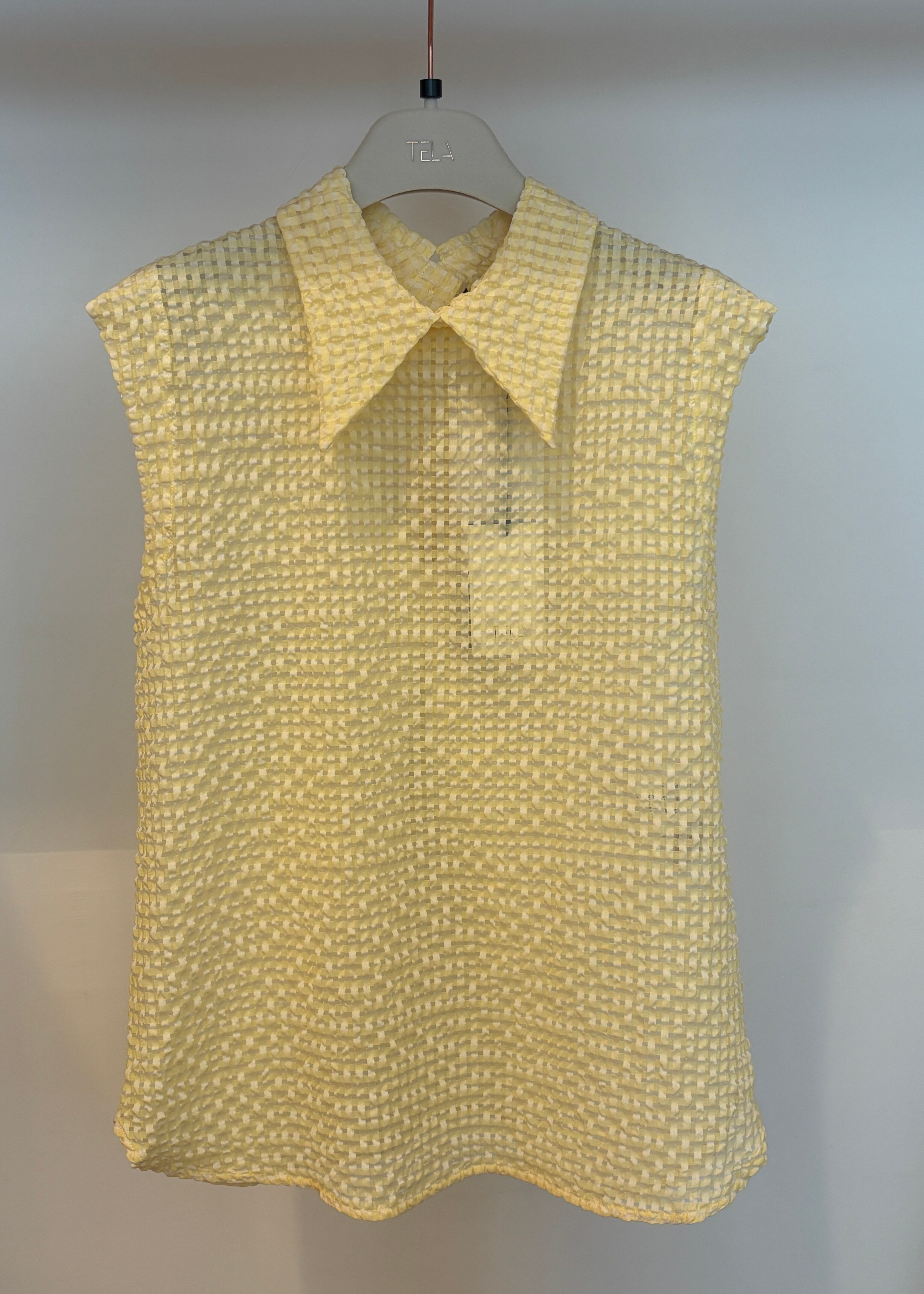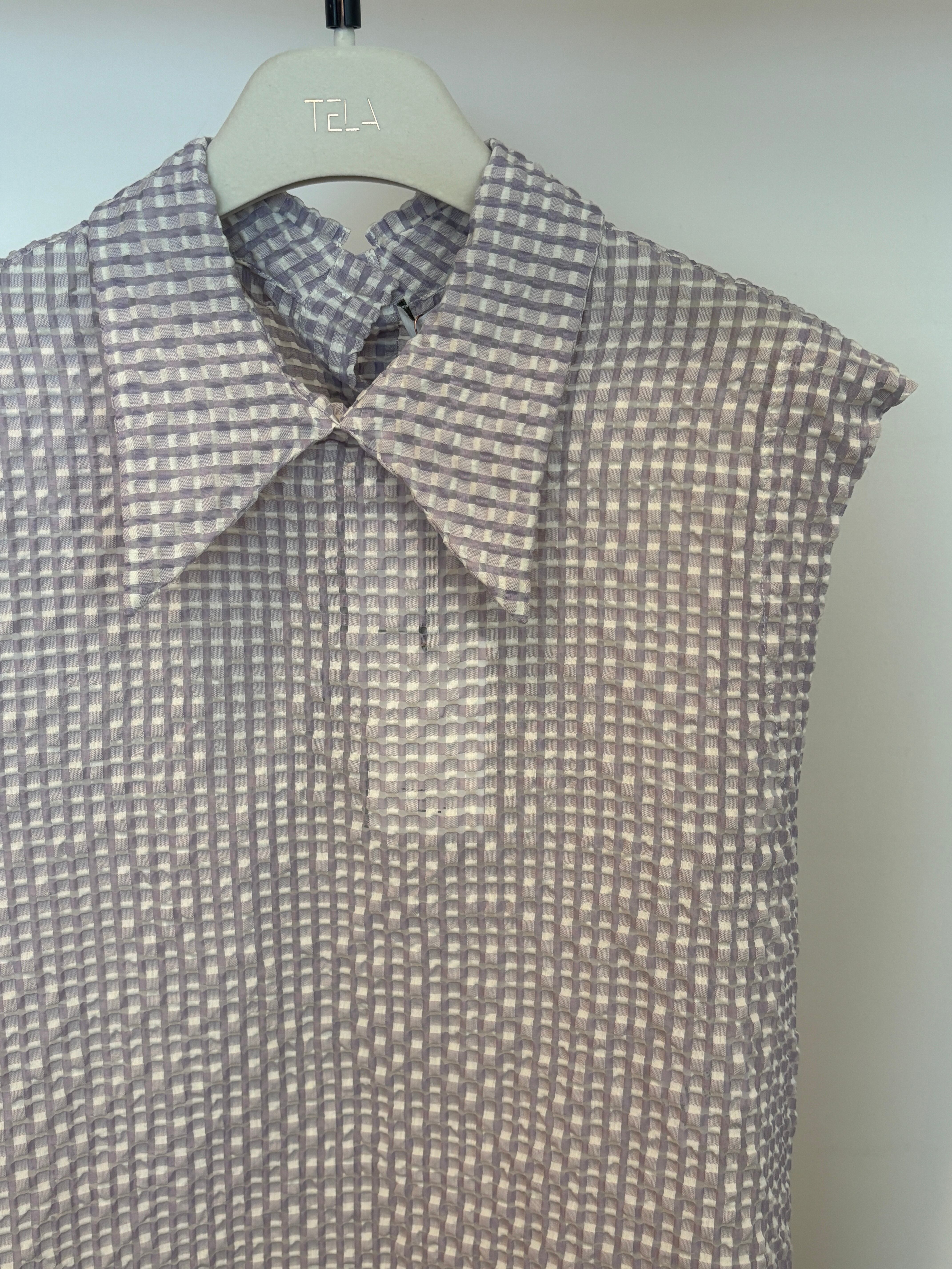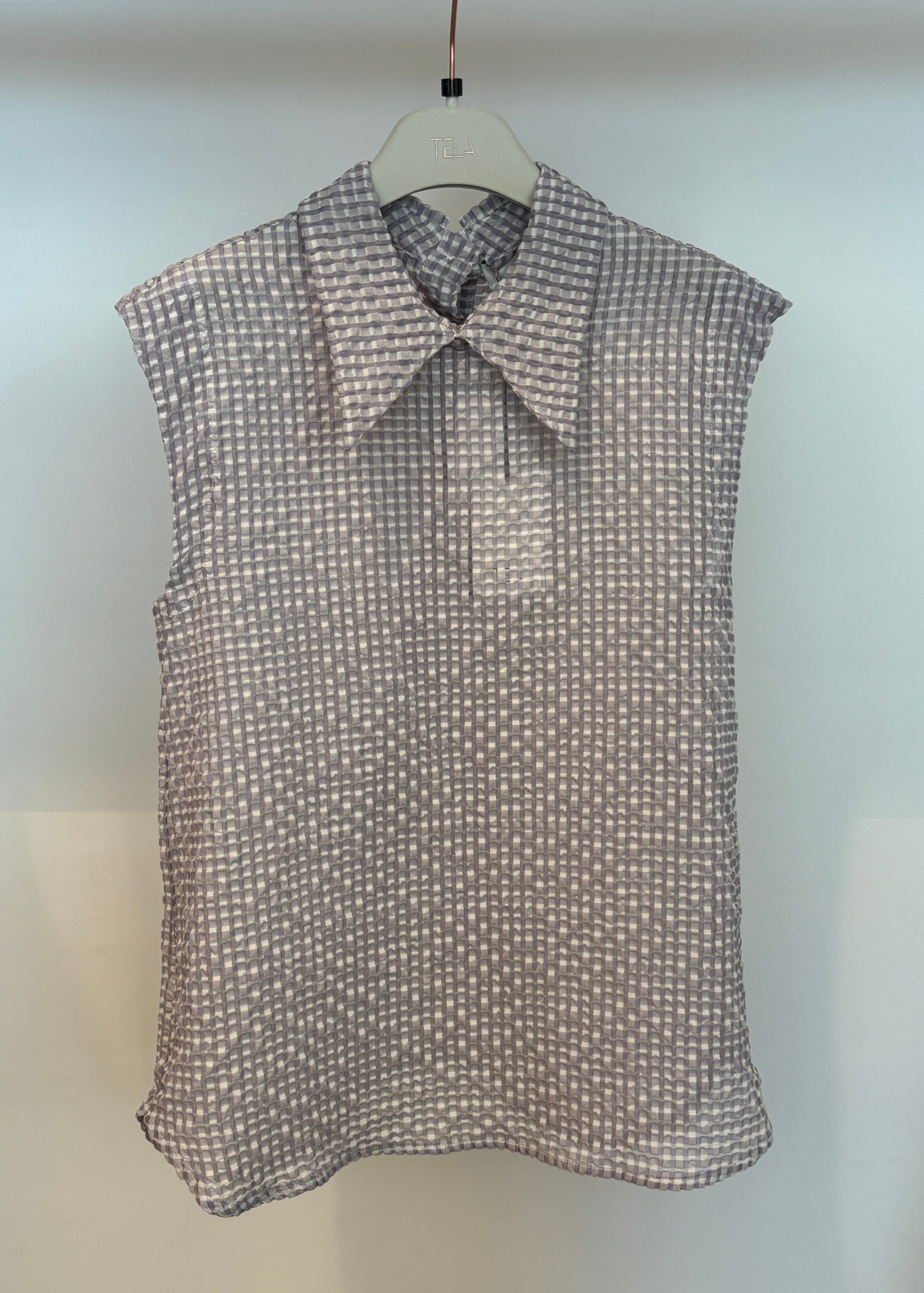 ■ TELA/OSLO ギンガムチェックブラウス シアー感のある生地の織りで、ギンガムチェックに仕上げたノースリーブブラウス。襟付きデザインが女性らしさを引き立て、さりげないエレガンスをプラスします。軽やかな着心地で、夏のコーディネートにぴったりです。