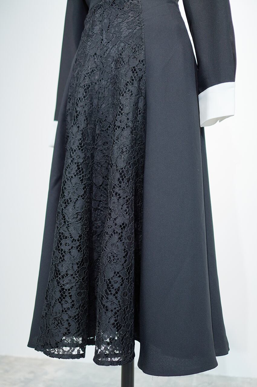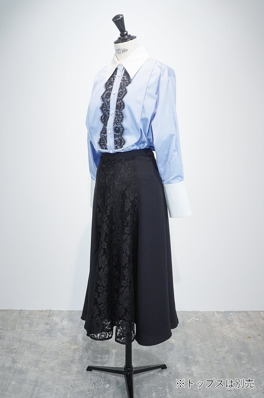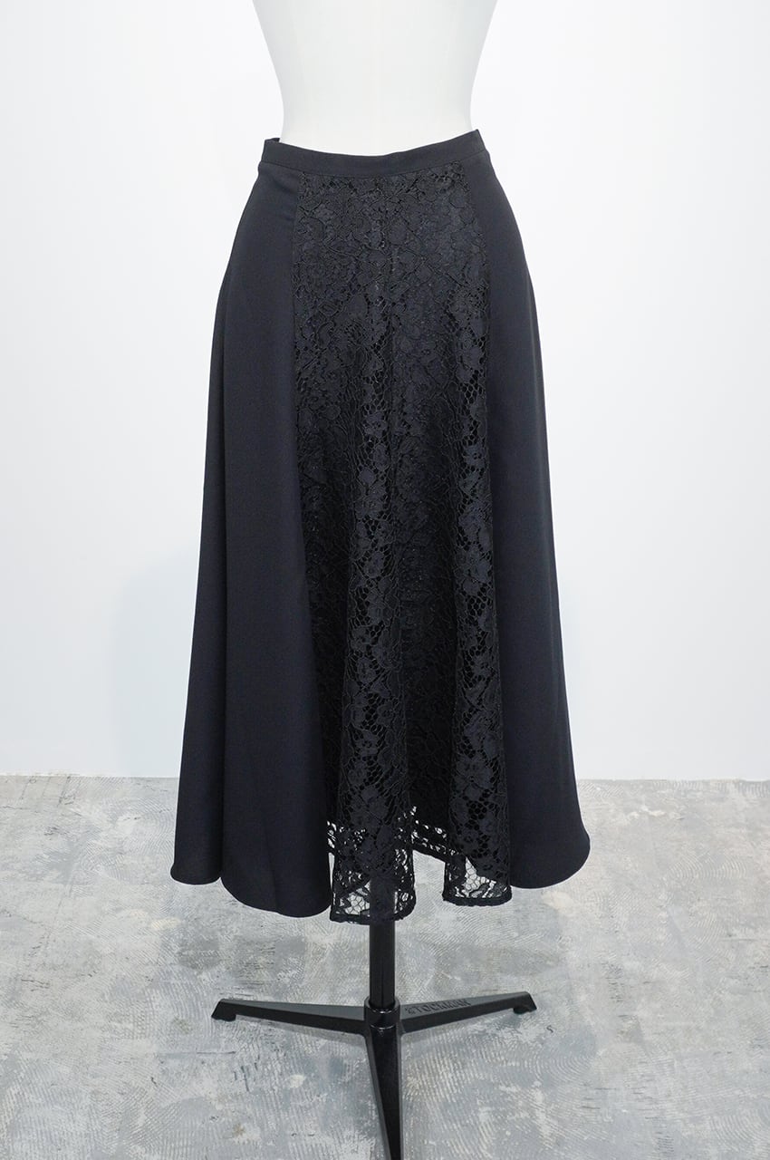前面と後ろにレースの切り替えの、落ち感がエレガントなスカート。